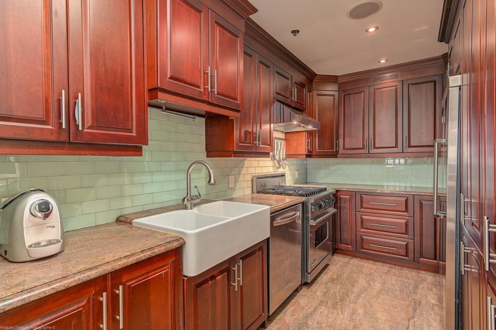 Viking stove,washer and dryer, dishwasher,window coverings,light fixtures, alarm system,awning on the terrace,gas fireplace,indoor and outdoor speakers,central vacuum, cabinets and mirrors in the 2 bathrooms, shelves in the walk-in closet and wine cellar and flower pots on the terrace.