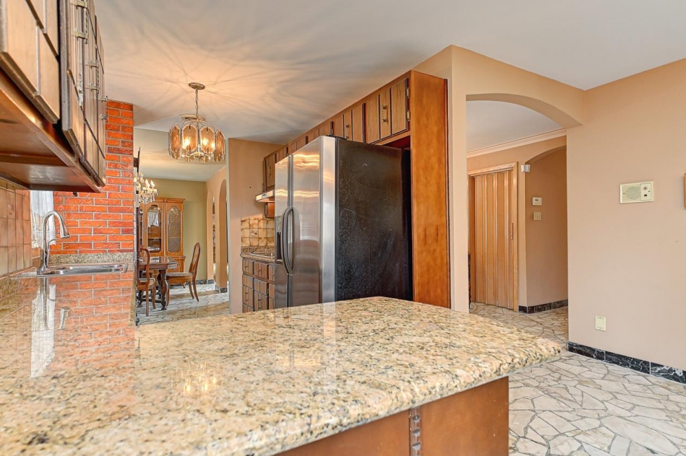 5835 Rue Pierre Montréal-Nord - Montreal H1G 1N7Beautiful bungalow located on a lot of 6,750 square feet in a quiet area in Montreal North. This bungalow has 4 large bedrooms on the main floor, a big living room, a dining room and a dinette area. The kitchen cabinets are made of wood with granite countertops. The primary bedroom is equipped with an ensuite bathroom including a bidet and bath-shower. The floors on the main floor and basement are finished in marble. In the basement there is a huge family room as well as a large kitchen with wood cabinets, a bathroom and a laundry room. The backyard is completely landscaped. There is a huge balcony situated in the front yard of the home. Close to elementary and high schools, parks and public transport.